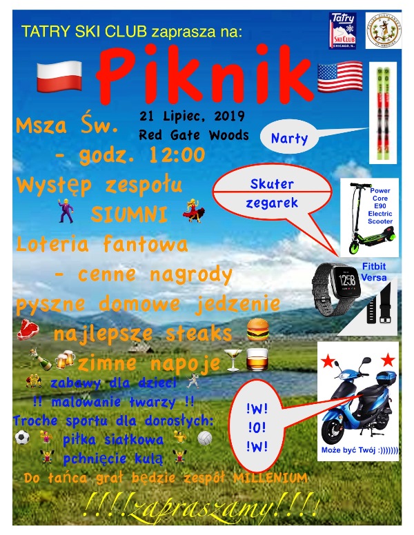 Zarząd Klub Nr 47 Tatry serdecznie zapraszana na coroczny Piknik, który odbędzie się w niedzielę 21 lipca br. w Red Gate Woods. Piknik rozpocznie się Mszą Św. o godz.