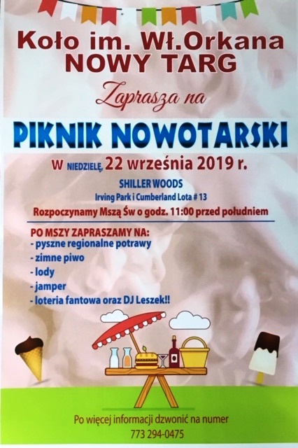 Zarząd Koła Nr 2 im. Władysława Orkana Nowy Targ, serdecznie zaprasza na Piknik Jesienny w niedzielę 22 września br. do Schiller Woods, Irving Park i Cumberland Chicago Lota # 13. Rozpoczynamy mszą świętą o godz. 11:00 przed południem.