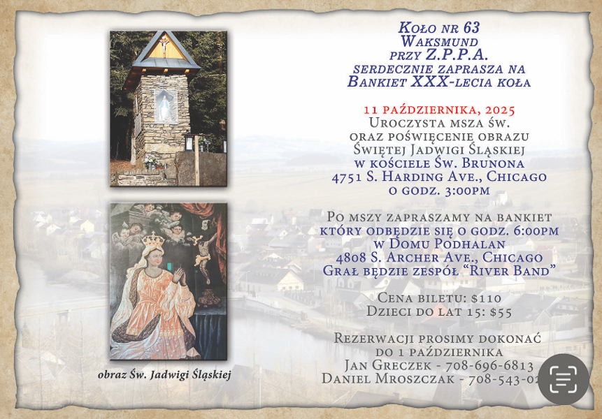 Po mszy zapraszamy na bankiet o godz 6.00 PM