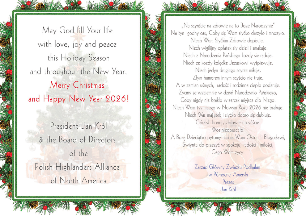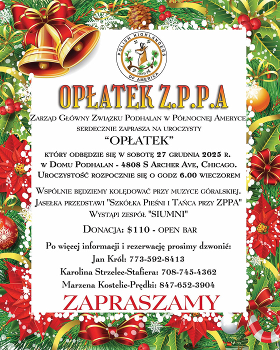 Serdecznie zapraszamy na ostatnie w tym roku zebranie Prezesów i Dyrektorów Związku Podhalan w Północnej Ameryce, które odbędzie się w piątek, 12 grudnia 2025 r. o godz. 19:30 w Domu Podhalan, 4808 S. Archer Ave., Chicago.