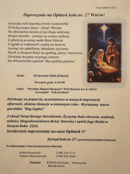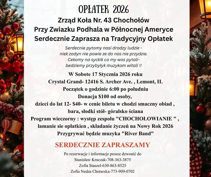 Zaprasza na OPŁATEK, który odbędzie się 17 stycznia 2026 roku