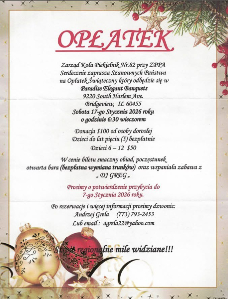 serdecznie zaprasza na Opłatek Świąteczny w sobotę 10 stycznia 2026 roku