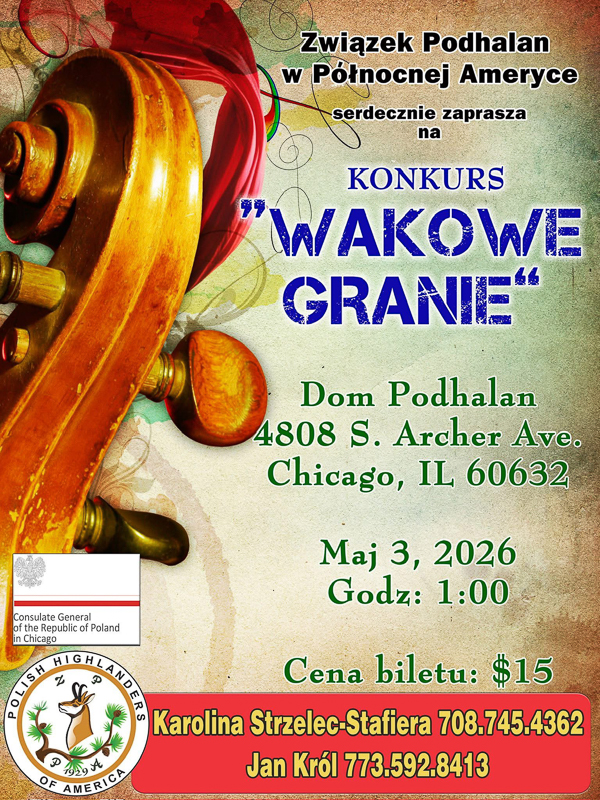 Serdecznie zaprasza całą Polonię, zespoły góralskie, rodziców do wzięcia