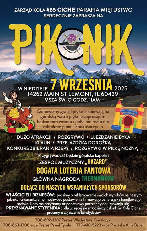 Szczegółowe informacje można uzyskać pod numerami telefonów: 708-254-2355 lub 312-805-0964.