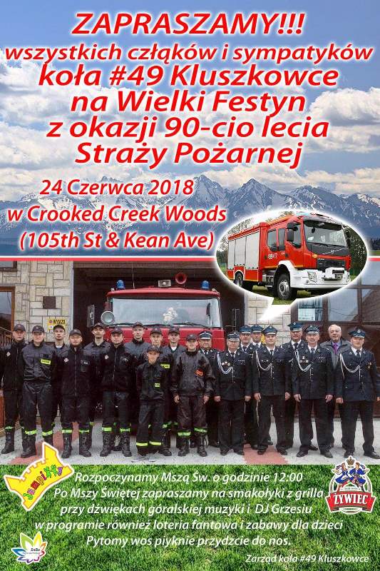 Zarząd Koła Nr 81Bustryk serdecznie zaprasza całą Polonię i brać góralską, sympatyków, Bustrycanów na PIKNIK w Slovenian Catholic Mission przy14246 Main st. Lemont Il. Piknik rozpocznie się Mszą św. w niedzielę 24 czerwca 2018r. o godz. 12.30 po południu.