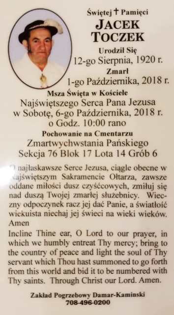 W Chicago w wieku 98 lat zmarł Jacek Toczek. Urodził się w Witowie, od 1964 roku mieszkał w USA, gdzie był zasłużonym działaczem ZPPA. Czytelnicy Tygodnika mogli go poznać, gdy w 2009 roku pozował do zdjęcia do kalendarza, który co roku dołączamy do naszej gazety.