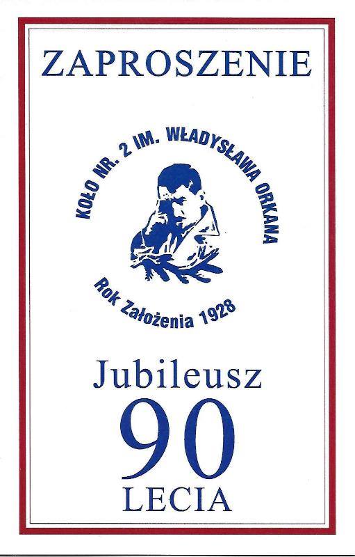Koło Nr 2 im. Władysława Orkana Nowy Targ, serdecznie zaprasza bratnie koła wraz ze sztandarami, przyjaciół oraz cała Polonię na uroczyste obchody 90-lecia Koła