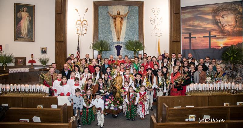 Niedziela Palmowa Kościele Św. Kamila z udziałem Szkółki Pieśni i Tańca przy ZG ZPPA oraz przedstawicieli Zarządu Głównego ZPPA