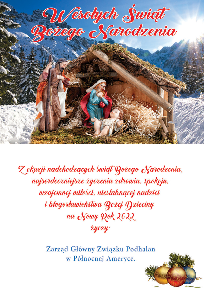 Podhalanom działającym w Związku Podhalan Życzę aby ich praca w pielęgnowaniu naszych tradycji dawała siłę i nadzieję na lepsze jutro dla dobra naszych dzieci i wnuków, tu w Ameryce, daleko od Ojczyzny i tam w Polsce. Tradycja jest naszą godnością i dumą.