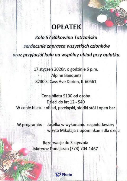 na uroczysty OPŁATEK, który odbędzie się 25 stycznia 2026 roku