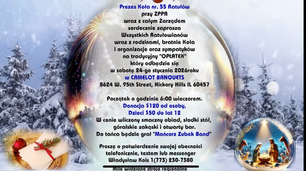 Zaprasza na OPŁATEK, który odbędzie się 17 stycznia 2026 roku
