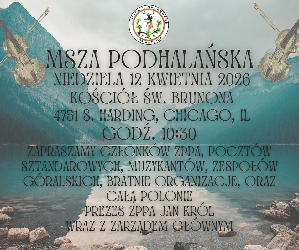 Jednocześnie serdecznie zapraszamy na comiesięczne zebranie Prezesów i Dyrektorów ZPPA, które odbędzie się w piątek, 10 kwietnia 2026 roku o godz. 19:30 w Domu Podhalan przy 4808 S. Archer Ave w Chicago. Zebranie rozpoczniemy uroczystym upamiętnieniem kolejnej rocznicy Zbrodni Katyńskiej oraz Katastrofy Smoleńskiej, po czym przejdziemy do spraw organizacyjnych.