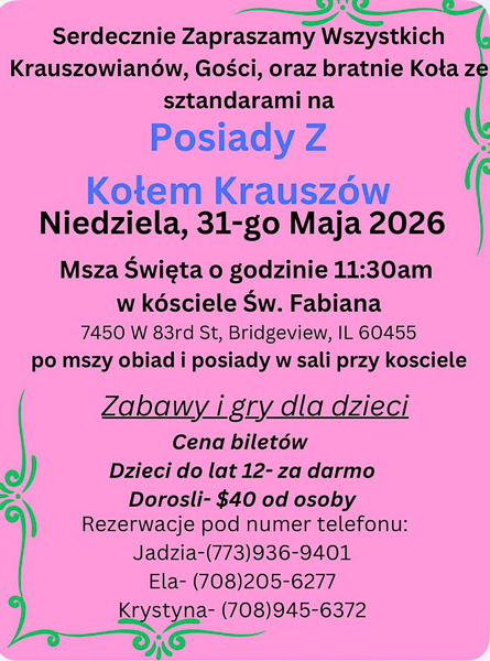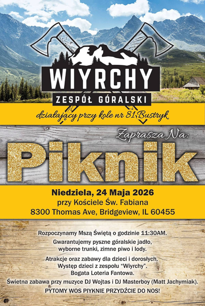 Jednocześnie serdecznie zapraszamy na comiesięczne zebranie Prezesów i Dyrektorów ZPPA, które odbędzie się w piątek, 10 kwietnia 2026 roku o godz. 19:30 w Domu Podhalan przy 4808 S. Archer Ave w Chicago. Zebranie rozpoczniemy uroczystym upamiętnieniem kolejnej rocznicy Zbrodni Katyńskiej oraz Katastrofy Smoleńskiej, po czym przejdziemy do spraw organizacyjnych.